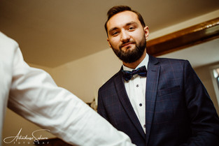 ❤️ Dzień zaczynamy od przygotowania w domu Pana Młodego Krzysztofa. Rodzice, świadek, siostra i babcia się już nie mogą doczekać. Detale uwiecznione, możemy zaczynać. Koszula i spodnie na miejscu. Teraz czas na spinki, muchę i zegarek. Hehe, nie ma to jak zapomnieć, go ustawić i zrobić mu zdjęcia. Tak czasem bywa 😄. Zostaje pas, buty i smoking? Chyba tak to się nazywa 😄🙃 Na koniec zdjęcie grupowe i mamy to.