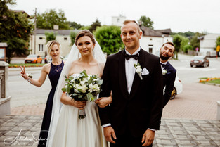 Mija chwil kilka i jesteśmy przed kościołem w Parzęczewie. Goście i rodzina dotarli. Ksiądz uśmiechnięty, młodzi również. Oboje powiedzieli sakramentalne "TAK". Radość i szczęście malują ich twarze. Zostają jeszcze życzenia po ślubie i zbieramy się na salę by uczcić ten ważny dla Was dzień.