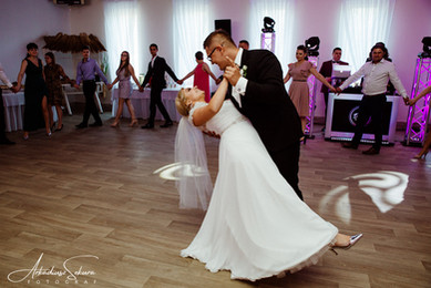 Przenoszenie Pani Młodej przez próg, 100 lat, życzeń ciąg dalszy i czas na pierwszy toast. Piotrze wódkę jednak postawiłeś gorzką.. To i teraz trzeba ją osłodzić. Całowanie zaliczone. Zaczynamy pierwszy taniec i tym samym tańce na weselu. Po 1 bloku tanecznym wjeżdża pyszny tort, a raczej muffinki. Mega fajne rozwiązanie. Pięknie wygląda i super smakuje. Dj gra super, wszyscy goście bawią się na sali. Kolejna przerwa na lody i podziękowania dla rodziców. Zostały nam oczepiny i wykupywanie fantów. Wesele hej, bawiliście się pięknie. Magda i Piotrze... jeszcze raz, dużo zdrowia, szczęścia, miłości i radości. Do zobaczenia na plenerze ;)