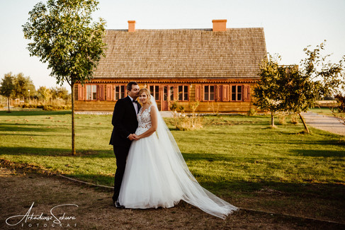 “Powiem szczerze: Sesja plenerowa ślubna w zagrodzie młynarskiej wyszła cudnie o zachodzie słońca."