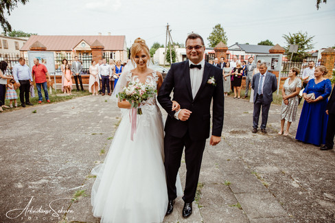Czasem pytacie i pewnie sami się zastanawiacie czy jest stres w tym dniu? Odpowiedzi jest wiele, choć najlepsze słowa, to: "są emocje".. Kiedy Pan Młody, Damian widzi pierwszy raz swoją ukochaną przebraną za księżniczkę, to na bank zapamięta ten widok na lata. Kolejne emocje, to błogosławieństwo i słowa wypowiedziane od rodziców. Wszystko to jest Wasze w tym pięknym dniu. Karolina i Damian z uśmiechem na twarzy jadą do kościoła by dalej ślubować. Po drodze sąsiad "Janusz" robi bramkę i kolejne piękne życzenia dla Was.