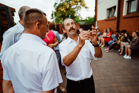 Stoły ponownie zastawione, piwko chłodne z kega czeka na dorosłych. Słodycze naszykowane dla dzieci. Poprawiny po weselu, to drugi dzień ślubnej imprezy. Ciężko napisać by Natalia i Tomek byli wypoczęci, ale po takim pięknym dniu ślubu i tylu emocjach wyglądają bardzo "rześko". Dziś królują już nie Państwo Młodzi, ale dzieci. Oj dużo dzieci...