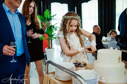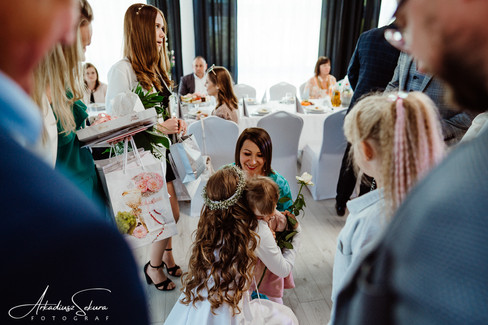 Małymi kroczkami zbliża się 12:50, zaczynam zdjęcia komunijne na sali. Dziś dzień szczególny nie tylko ze względu na komunię, ale fakt, że będą to dwie komunie. Dziewczynki komunijne Inez i Natasza znają się, są koleżankami czy też przyjaciółkami, rodziny też się znają, dlatego komunia jest "wspólna". Wszystko na jednej pięknej sali, 2 oddzielne stoły dla 2 rodzin. Oprócz fotografa znalazł się wspólny DJ. Wychodzi na to, że zalet jest całkiem sporo z takiego przedsięwzięcia. Wspólna piękna sala, wspólna muzyka i pamiątka zdjęciowa, a przede wszystkim wspólnie spędzony czas. Zdjęcia detali takich jak stoły, jedzenie czy owoce już są zrobione, czekam teraz na rodziny.
