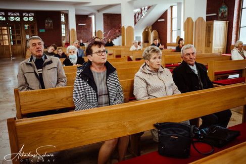 Oczywiście znalazły się też zdjęcia rodziców chrzestnych, ciotek, wujków oraz dziadków. Po mszy świętej tradycyjne zdjęcia grupowe na tle ołtarza. Mamy, to. Spokojnym krokiem udajemy się do wyjścia i jedziemy na poczęstunek.